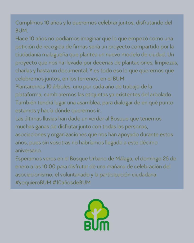 La Plataforma Ciudadana del Bosque Urbano Málaga (BUM) quiere crear un bosque mediterráneo en el corazón de Málaga.
